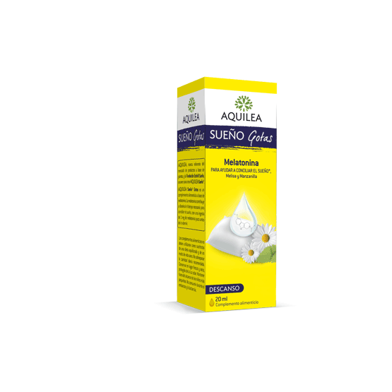 Aquilea Sueño gotas, es un complemento a base de melatonina y además contiene Manzanilla y Melisa. La melatonina contribuye a disminuir el tiempo necesario para conciliar el sueño, con una ingesta de 1 mg de melatonina poco antes de dormir.