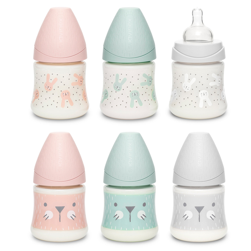 Biberones premium de poliamida con tetina redonda tres posiciones de silicona con capacidad de 150ml.