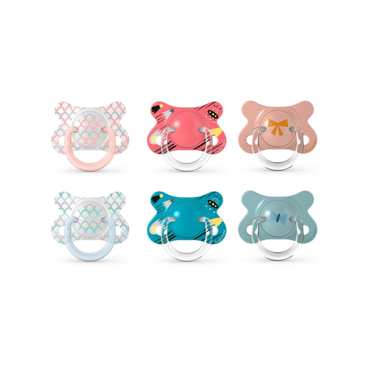 Pack de 2 chupetes Prêt-à-porter con tetina fisiológica de silicona para bebés de -2 a 4 meses o tetina anatómica de látex o silicona.