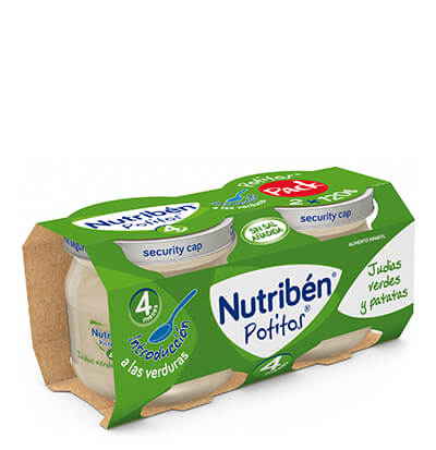 Los potitos® Nutribén® de Introducción a las judías verdes y patatas están elaborados para alimentar a tu bebé a partir de los 4 meses y forman parte de una dieta variada. Estos potitos® de inicio a las judías verdes con patatas, así como todos los potitos® Nutribén®, presentan una boca más ancha para facilitar la entrada de una cuchara más grande. Los potitos® Nutribén® siguen las recomendaciones de la ESPGHAN: