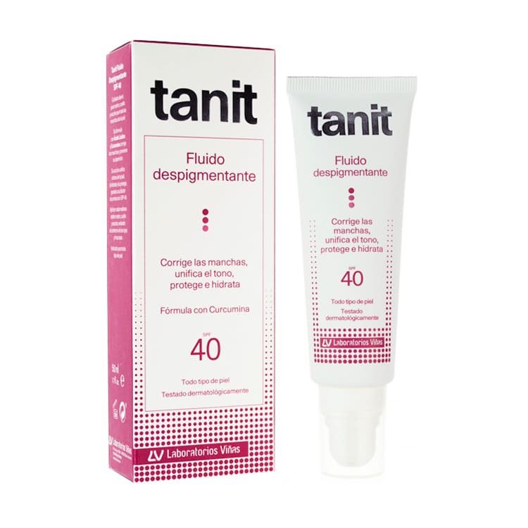 Tanit Fluido Despigmentante SPF 40 es el cuidado diario para rostro, cuello y escote desarrollado para el tratamiento eficaz de las manchas pigmentarias. Trata y previene las manchas, unifica el tono de la piel y corrige los signos de la edad. Tras su uso la piel está hidratada y protegida y las manchas se reducen.