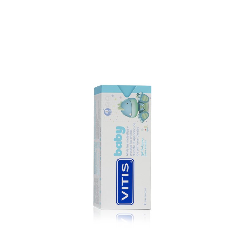 VITIS® Baby gel bálsamo para encías de sabor neutro, alivia las molestias asociadas al proceso de la erupción dental protegiendo y cuidando las encías y proporcionando una sensación refrescante.